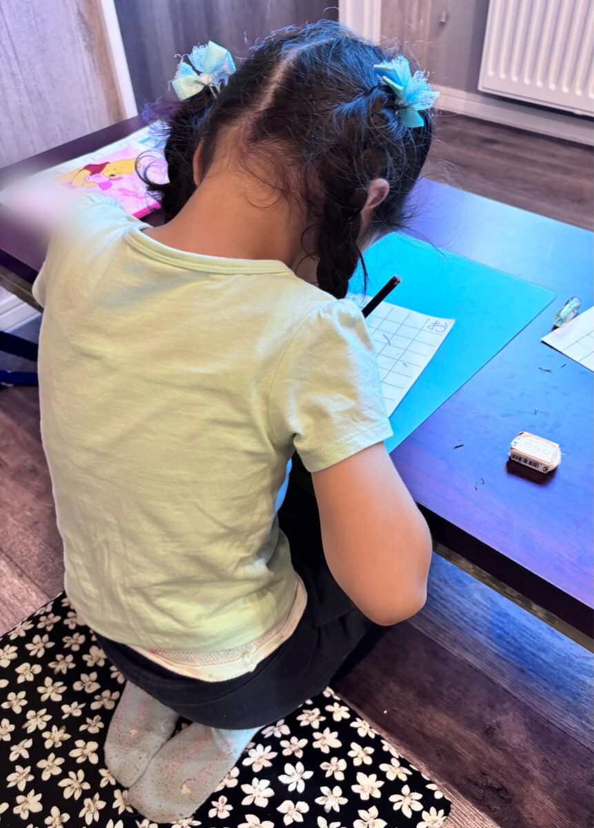 落ち着いた姿勢で書くことで筆や鉛筆が安定し、文字も少しずつ整っていきます